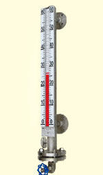 在(zai)您(nin)選(xuan)用(yong)此(ci)產(chan)品(pin)前(qian)我(wo)們(men)先(xian)將(jiang)磁(ci)性(xing)翻(fan)柱(zhu)液(ye)位(wei)計(ji)的(de)工(gong)作(zuo)原(yuan)理(li)作(zuo)一(yi)簡(jian)單(dan)的(de)介(jie)紹(shao)。它(ta)有(you)一(yi)容(rong)納(na)浮(fu)球(qiu)的(de)腔(qiang)體(ti)我(wo)們(men)稱(cheng)其(qi)為(wei)主(zhu)體(ti)管(guan)或(huo)外(wai)殼(ke),它(ta)通(tong)過(guo)法(fa)蘭(lan)或(huo)其(qi)他(ta)接(jie)口(kou)與(yu)容(rong)器(qi)組(zu)成(cheng)一(yi)個(ge)連(lian)通(tong)器(qi);這樣它腔體內的液麵與容器內的液麵是相同高度的,所以腔體內的浮球會隨著容器內液麵的升降而升降;這(zhe)時(shi)候(hou)我(wo)們(men)並(bing)不(bu)能(neng)看(kan)到(dao)液(ye)位(wei),所(suo)以(yi)我(wo)們(men)在(zai)腔(qiang)體(ti)的(de)外(wai)麵(mian)裝(zhuang)了(le)一(yi)個(ge)翻(fan)柱(zhu)顯(xian)示(shi)器(qi),因(yin)為(wei)我(wo)們(men)在(zai)製(zhi)造(zao)浮(fu)球(qiu)時(shi)在(zai)浮(fu)球(qiu)沉(chen)入(ru)液(ye)體(ti)與(yu)浮(fu)出(chu)部(bu)分(fen)的(de)交(jiao)界(jie)處(chu)安(an)裝(zhuang)了(le)磁(ci)鋼(gang),它(ta)與(yu)浮(fu)球(qiu)隨(sui)液(ye)麵(mian)升(sheng)降(jiang)時(shi),它(ta)的(de)磁(ci)性(xing)透(tou)過(guo)外(wai)殼(ke)傳(chuan)遞(di)給(gei)翻(fan)柱(zhu)顯(xian)示(shi)器(qi),推(tui)動(dong)磁(ci)翻(fan)柱(zhu)翻(fan)轉(zhuan)180°;由於磁翻柱是有紅、白兩個半圓柱合成的圓柱體,所以翻轉180°後朝向翻柱顯示器外的會改變顏色(液麵以下紅色、以上白色),兩色交界處即是液麵的高度。