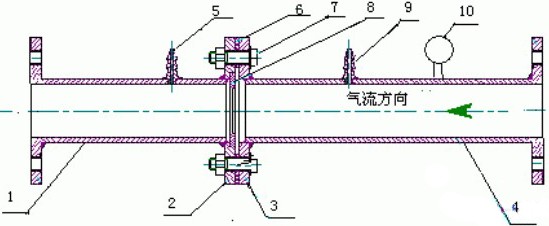 1、 4管路 2、3法蘭盤 5、9壓差計接頭 6密封圈
