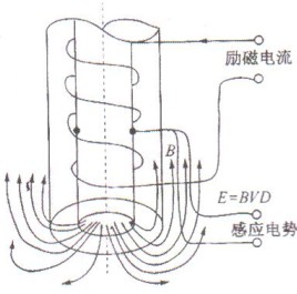 插入式電磁流量計工作原理圖解 插入式電磁流量計原理與管道式電磁流量計一樣也是基於法拉第電磁感應定律。當導電液體以平均流速V且垂直於磁場強度為B磁力線方向通過距離為L的兩電極時,在電極間就產生相對的電動勢E,法拉第電磁感應定律為: