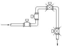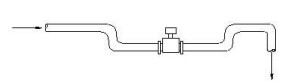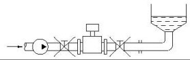 智能型電磁流量計為了避免夾附所引起的測量誤差以及真空引起對PTFE和橡膠襯裏的損害,我們需按照以下位置正確安裝流量計: 1、流量計應安裝在水平管道較低處和垂直向上處,避免安裝在管道的最高點和垂直向下處。 2、應安裝在管道的上升處 3、在開口排放的管道安裝,應安裝在管道的較低處 4、若管道落差超過5m,在流量計的下遊安裝排氣閥 5、應在流量計的下遊安裝控製閥和切斷閥,而不應安裝在傳感器上遊 6、流量計絕對不能安裝在泵的進口處,應安裝在泵的出口處