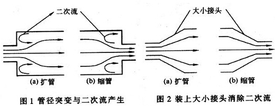 wulunshibiandahaishibianxiao,douhuichanshengerciliudong,ganraozhengchangdeliusufenbu。tongchangzaiyudaozheleiqingkuangdeshihou,womenhuiweiguandaoanzhuangheshidedaxiaojietou,rutu2所示。為流體做合理過渡,使流速能夠恢複到正常狀態,保證測量數據的準確與穩定。