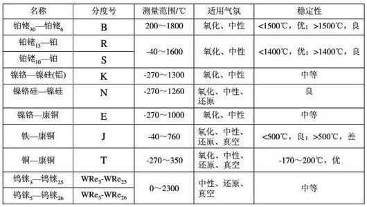 工業用熱電偶的測溫範圍見下表: