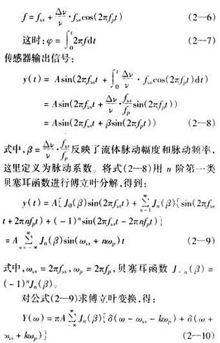 1 引 言 在過程控製和流體計量中,渦街流量計應ying用yong相xiang當dang廣guang泛fan。渦wo街jie流liu量liang計ji本ben質zhi上shang是shi一yi種zhong流liu體ti振zhen動dong型xing流liu量liang計ji,因yin此ci易yi受shou測ce量liang現xian場chang的de機ji械xie振zhen動dong和he不bu穩wen定ding流liu場chang等deng噪zao聲sheng的de幹gan擾rao,測ce量liang精jing度du往wang往wang得de不bu到dao保bao證zheng。如ru何he從cong含han有you噪zao聲sheng的de信xin號hao中zhong提ti取qu流liu量liang信xin息xi,是shi流liu量liang測ce量liang一yi直zhi沒mei能neng很hen好hao解jie決jue的de難nan題ti。現xian場chang的de噪zao聲sheng各ge種zhong各ge樣yang,其qi中zhong,脈mai動dong流liu是shi一yi種zhong對dui測ce量liang精jing度du影ying響xiang較jiao大da的de噪zao聲sheng幹gan擾rao。 筆(bi)者(zhe)根(gen)據(ju)國(guo)外(wai)研(yan)究(jiu)成(cheng)果(guo),從(cong)理(li)論(lun)上(shang)分(fen)析(xi)了(le)脈(mai)動(dong)流(liu)幹(gan)擾(rao)下(xia)渦(wo)街(jie)傳(chuan)感(gan)器(qi)的(de)輸(shu)出(chu)信(xin)號(hao),采(cai)用(yong)貝(bei)塞(sai)耳(er)函(han)數(shu)分(fen)解(jie)出(chu)渦(wo)街(jie)流(liu)量(liang)信(xin)號(hao)頻(pin)率(lv)和(he)脈(mai)動(dong)幹(gan)擾(rao)頻(pin)率(lv),分(fen)析(xi)流(liu)體(ti)脈(mai)動(dong)對(dui)渦(wo)街(jie)流(liu)量(liang)計(ji)測(ce)量(liang)的(de)影(ying)響(xiang);說明了在脈動流幹擾下出現的鎖定現象;提出了提高流量計測量精度的方法。 2脈動流對測量的影響 2.1渦街流量計測量原理 渦街流量計是基於“卡門渦街”原yuan理li的de流liu體ti振zhen動dong型xing流liu量liang計ji,壓ya電dian傳chuan感gan器qi表biao體ti內nei有you一yi個ge漩xuan渦wo發fa生sheng體ti,當dang流liu體ti流liu過guo漩xuan渦wo發fa生sheng體ti時shi,在zai其qi後hou部bu兩liang側ce交jiao替ti產chan生sheng兩liang列lie漩xuan渦wo,一yi側ce漩xuan渦wo分fen離li的de頻pin率lv與yu流liu體ti的de流liu速su成cheng正zheng比bi。 其中,f為漩渦分離頻率(Hz);ν為管道內流體的平均流速(m/s);St為斯特羅哈常數;d為漩渦發生體迎流麵寬度(m);D為管道內徑(m)。 漩渦的分離頻率在一定雷諾數範圍內與通過管道的流體流量成線性關係: 因而,通過測量漩渦分離頻率,就可知道流體的流速,測出通過管道的流體的流量。 2.2脈動流條件下渦街流量計測量結果 在(zai)流(liu)體(ti)穩(wen)定(ding)流(liu)動(dong)條(tiao)件(jian)下(xia),壓(ya)電(dian)傳(chuan)感(gan)器(qi)輸(shu)出(chu)的(de)電(dian)壓(ya)信(xin)號(hao)為(wei)正(zheng)弦(xian)波(bo)。正(zheng)弦(xian)波(bo)的(de)頻(pin)率(lv)與(yu)流(liu)體(ti)的(de)流(liu)速(su)成(cheng)正(zheng)比(bi),幅(fu)度(du)與(yu)流(liu)體(ti)的(de)密(mi)度(du)和(he)速(su)度(du)的(de)平(ping)方(fang)成(cheng)正(zheng)比(bi)。 流體穩定流動狀態下,管道內流體流動平均速度為ν。在脈動流作用下,管道內流體的流速疊加了隨時間周期變化的脈動分量[1]: 式中,Δν為流體脈動時偏離穩態流速的最大幅度,fp為脈動頻率。 因為漩渦分離頻率與管道內流體流動速度成正比,所以脈動流條件下的漩渦分離的瞬時頻率為: 流體脈動條件下,渦街流量計輸出信號疊加了調頻噪聲。從公式(2—10)可以看出,輸出信號的頻譜包含以渦街信號主頻率fνs為中心的較寬的頻帶,fνs左(zuo)右(you)兩(liang)則(ze)對(dui)稱(cheng)分(fen)布(bu)了(le)無(wu)窮(qiong)多(duo)邊(bian)頻(pin)分(fen)量(liang),邊(bian)頻(pin)分(fen)量(liang)和(he)主(zhu)頻(pin)分(fen)量(liang)之(zhi)間(jian)的(de)間(jian)隔(ge)恰(qia)為(wei)脈(mai)動(dong)頻(pin)率(lv)的(de)整(zheng)數(shu)倍(bei),它(ta)們(men)的(de)幅(fu)度(du)大(da)小(xiao)由(you)對(dui)應(ying)的(de)各(ge)階(jie)貝(bei)塞(sai)耳(er)函(han)數(shu)所(suo)決(jue)定(ding)。 脈動係數β也是一個重要的參數,它的大小變化對輸出信號的頻譜結構有著重要的作用。由貝塞耳函數曲線(如圖2—1所示)可知,當β≤1時,隻有J0(β)和J1(β)有比較大的數值,而J2(β),J3(β)等均可以忽略,因此,輸出信號的頻譜實際上隻有ωνs和wνs±nwp組成。當β>1時,隨著β的增大,邊頻分量數目增多。