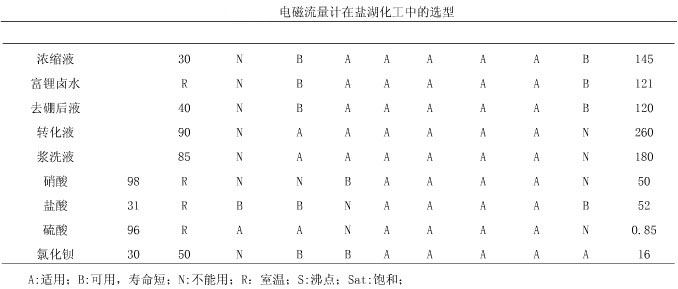 鋰業公司為鹽湖化工企業,主要生產碳酸鋰硼酸、jiafeidengyanhuhuagongchanpin,yuanliaoweishaizhilushui,ciyanhushuliusuanyaxinggaomeilibiyanhu,zaiyanhuhuagongshengchanzhongchanpinqiquan,yejuyoudaibiaoxing。genjuyanhuhuagongyuanliaotexing,chanshu電磁流量計選型。鹽湖化工原理的特點為電導率高(平均在150ms/cm),強腐蝕,易結晶。生產過程中所需要的輔料主要強酸、強堿。生產車間的管道都為防腐塑料材質,生產環境溫度最高為90℃,最低為-30℃。鑒於以上工況,在鹽湖化工中電磁流量計比其他流量計具有精度高、壽命長、維護方便、性價比高的有點,在鹽湖化工中主要在反應釜的定比例投放、貿易計量、體積計量等方麵。