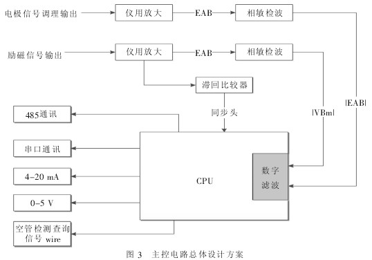 0引言 挖泥船電磁流量計用來指導挖泥船操作施工,防止堵管、悶(men)耙(pa),與(yu)密(mi)度(du)測(ce)量(liang)設(she)備(bei)一(yi)起(qi)使(shi)用(yong)構(gou)成(cheng)產(chan)量(liang)計(ji),為(wei)施(shi)工(gong)操(cao)作(zuo)與(yu)管(guan)理(li)提(ti)供(gong)決(jue)策(ce)數(shu)據(ju),有(you)利(li)於(yu)提(ti)高(gao)施(shi)工(gong)效(xiao)率(lv)。其(qi)測(ce)量(liang)介(jie)質(zhi)為(wei)液(ye)固(gu)兩(liang)相(xiang)流(liu)體(ti),有(you)別(bie)於(yu)通(tong)常(chang)意(yi)義(yi)下(xia)的(de)單(dan)一(yi)介(jie)質(zhi),測(ce)量(liang)難(nan)度(du)大(da)大(da)增(zeng)加(jia)。而(er)電磁流量計(EMF)是根據電磁感應定律製成的一種測量導電性流體流量的儀表[1]。與現有各種流量儀表相比,其直線性好、測量精度高、測量範圍和適用範圍廣、耐腐蝕性能強,可以解決其他流量計不易解決的問題,如髒汙流、腐蝕流等的測量[2]。 目前國內應用於挖泥船的電磁流量計大多存在零點漂移、轉換精度不高、流速不穩、kongguanjianceyishichangdengzhuduowenti。duici,womenjinxinglexiangguanyanjiubingtichuxiangyinggaijincuoshi,xianyiyanfachuyizhongzhuanmenyongyuwanichuandedianciliuliangji,zaipaxishiwanichuanshangchenggongyingyong,qudelehenhaodexiaoguo。benwentongguoxinhaochulihekongguanjiancegongnengxiangxijieshaogaixinxingwanichuandianciliuliangji。 1電磁流量計工作原理 dianciliuliangjifenweichuanganqihezhuanhuanqiliangbufen。chuanganqishibaliuguoguandaoneidedaodianliutideliusuxinhaozhuanhuanweidianxinhao,zhuanhuanqishibachuanganqishuchudedianxinhaojinxingyouyongxinhaoshibietiqubingjinxingxiangguanchuli,yongyuzhujixianshi,zhuyaoyoulicidianlu、信號調理電路、微處理電路等部分組成。圖1為傳感器工作原理示意圖。 genjufaladidianciganyingdinglv,dangyidaotizaicichangzhongyundongerqiegecilixianshi,zaidaotiliangduanbianhuichanshengganyingdiandongshi。shezaijunyuncichangzhong,chuizhiyucichangfangxiangyouyigezhijingweiD的de管guan道dao。管guan道dao由you不bu導dao磁ci材cai料liao製zhi成cheng,內nei表biao麵mian加jia絕jue緣yuan襯chen裏li。當dang導dao電dian的de液ye體ti在zai管guan道dao中zhong流liu動dong時shi,導dao電dian液ye體ti就jiu切qie割ge磁ci力li線xian,因yin而er在zai磁ci場chang及ji流liu動dong方fang向xiang垂chui直zhi的de方fang向xiang將jiang產chan生sheng感gan應ying電dian動dong勢shi。如ru果guo在zai管guan道dao截jie麵mian垂chui直zhi於yu磁ci場chang的de直zhi徑jing兩liang端duan安an裝zhuang一yi對dui電dian極ji,隻zhi要yao管guan道dao內nei流liu速suυ為軸對稱分布,兩極之間就會產生感應電動勢[3],此感應電動勢與流速具有線性關係。其表達式為: E=K・B・D・V(1) 式中:V為測量管道內截麵上的平均流速(m/s); K為儀表常數; D為測量管內直徑(m); B為磁感應強度(T)。 轉換器將此感應電動勢測出,再根據線性關係式即可得出流速信號。圖2為電磁流量計整體設計示意圖。 考(kao)慮(lv)到(dao)傳(chuan)感(gan)器(qi)出(chu)來(lai)的(de)微(wei)弱(ruo)信(xin)號(hao)容(rong)易(yi)在(zai)傳(chuan)輸(shu)線(xian)上(shang)損(sun)耗(hao),故(gu)而(er)電(dian)極(ji)信(xin)號(hao)調(tiao)理(li)板(ban)和(he)空(kong)管(guan)檢(jian)測(ce)功(gong)能(neng)板(ban)就(jiu)近(jin)放(fang)置(zhi)於(yu)傳(chuan)感(gan)器(qi)出(chu)線(xian)口(kou),調(tiao)理(li)後(hou)經(jing)屏(ping)蔽(bi)線(xian)傳(chuan)輸(shu)至(zhi)轉(zhuan)換(huan)器(qi)上(shang)的(de)主(zhu)控(kong)電(dian)路(lu)。 結(jie)構(gou)上(shang)管(guan)道(dao)本(ben)身(shen)就(jiu)是(shi)個(ge)大(da)的(de)屏(ping)蔽(bi)體(ti),防(fang)止(zhi)勵(li)磁(ci)線(xian)圈(quan)磁(ci)場(chang)泄(xie)露(lu),信(xin)號(hao)采(cai)用(yong)屏(ping)蔽(bi)線(xian)傳(chuan)輸(shu),減(jian)少(shao)線(xian)與(yu)線(xian)之(zhi)間(jian)信(xin)號(hao)幹(gan)擾(rao),以(yi)及(ji)空(kong)間(jian)傳(chuan)播(bo)的(de)幹(gan)擾(rao),保(bao)證(zheng)信(xin)號(hao)的(de)完(wan)整(zheng)性(xing)。 電路上采用雙核主從式控製,方便流速測量及其空管檢測,克服了以往電磁流量計需要配合密度計來使用的缺陷;同時利用微機技術,使其各方麵性能大大提高,更加智能化,更加便於管理施工。 2勵磁方式的合理選擇 目前國產挖泥船流量計大多采用低頻方波勵磁方式,其主要特點是能避免零點漂移及無正交幹擾,抗同相幹擾能力較好[4]。但(dan)對(dui)於(yu)液(ye)固(gu)兩(liang)相(xiang)流(liu)體(ti)而(er)言(yan),當(dang)固(gu)體(ti)顆(ke)粒(li)撞(zhuang)擊(ji)電(dian)極(ji),表(biao)麵(mian)電(dian)位(wei)變(bian)化(hua)形(xing)成(cheng)尖(jian)峰(feng)狀(zhuang)噪(zao)聲(sheng),信(xin)號(hao)呈(cheng)現(xian)大(da)幅(fu)度(du)波(bo)動(dong)。而(er)低(di)頻(pin)方(fang)波(bo)勵(li)磁(ci)不(bu)能(neng)從(cong)硬(ying)件(jian)技(ji)術(shu)上(shang)消(xiao)除(chu)這(zhe)種(zhong)由(you)於(yu)衝(chong)擊(ji)造(zao)成(cheng)的(de)幹(gan)擾(rao),要(yao)實(shi)現(xian)測(ce)量(liang)結(jie)果(guo)的(de)穩(wen)定(ding),隻(zhi)能(neng)通(tong)過(guo)調(tiao)整(zheng)勵(li)磁(ci)頻(pin)率(lv)外(wai)加(jia)軟(ruan)件(jian)手(shou)段(duan)加(jia)以(yi)消(xiao)除(chu),但(dan)有(you)兩(liang)方(fang)麵(mian)的(de)缺(que)陷(xian): (1)挖(wa)泥(ni)船(chuan)上(shang)工(gong)況(kuang)複(fu)雜(za),挖(wa)泥(ni)工(gong)況(kuang)與(yu)合(he)適(shi)勵(li)磁(ci)頻(pin)率(lv)匹(pi)配(pei)問(wen)題(ti)很(hen)難(nan)完(wan)美(mei)解(jie)決(jue),隻(zhi)能(neng)通(tong)過(guo)現(xian)場(chang)不(bu)斷(duan)調(tiao)試(shi)較(jiao)合(he)適(shi)的(de)頻(pin)率(lv)參(can)數(shu)。同(tong)一(yi)工(gong)地(di)不(bu)同(tong)土(tu)質(zhi)都(dou)需(xu)要(yao)改(gai)