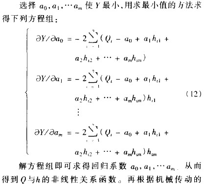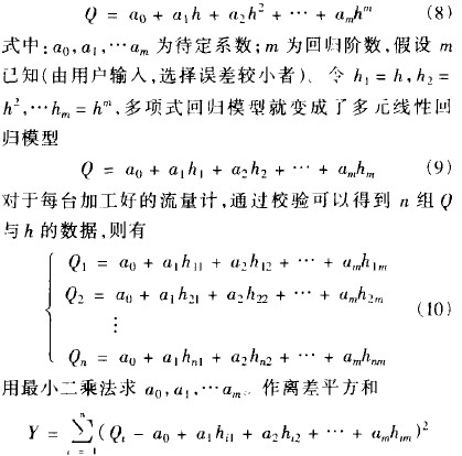 由於每台流量計的錐管和浮子的加工誤差不可能一致,每台金屬管轉子流量計的流量值p和浮子位移h的作線性關係也不可能一樣,所以在實際製造時流量計的凸輪都要逐台校驗加工,設口與h的非線性回歸模型為