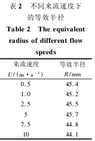 為了得到不同來流速度下的等效半徑,利用MATLAB 對各組數據進行相應理論流速的插值運算,得到如表 2 所示的數據。