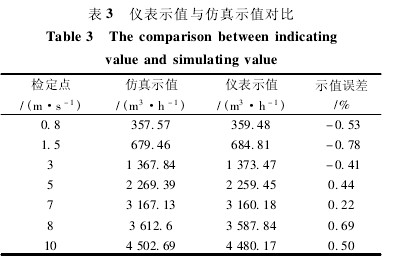 從表 3 數據可以看出,樣機測得的流量與仿真所得流量之間的誤差很小,其中最大的示值誤差也不超過 -0. 78%,充(chong)分(fen)說(shuo)明(ming)了(le)可(ke)以(yi)用(yong)等(deng)效(xiao)信(xin)號(hao)作(zuo)用(yong)範(fan)圍(wei)內(nei)的(de)平(ping)均(jun)流(liu)速(su)來(lai)代(dai)替(ti)被(bei)測(ce)管(guan)道(dao)截(jie)麵(mian)內(nei)的(de)平(ping)均(jun)流(liu)速(su)的(de)可(ke)行(xing)性(xing),即(ji)驗(yan)證(zheng)了(le)等(deng)效(xiao)信(xin)號(hao)作(zuo)用(yong)範(fan)圍(wei)的(de)存(cun)在(zai)和(he)確(que)定(ding)方(fang)法(fa)的(de)正(zheng)確(que)性(xing)。