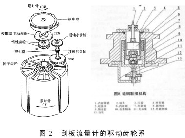 (4)出軸密封部分:出軸密封部分是連接流量計表頭和流量計殼體的部分,它一般有三種結構:磁性連軸器、機械密封式的連接、“O”型xing密mi封feng圈quan式shi的de連lian接jie。這zhe裏li我wo們men主zhu要yao分fen析xi以yi磁ci性xing聯lian軸zhou器qi為wei連lian接jie的de結jie構gou易yi出chu現xian的de故gu障zhang。磁ci性xing聯lian軸zhou器qi脫tuo磁ci,包bao括kuo打da滑hua,溫wen度du升sheng高gao,都dou非fei常chang容rong易yi引yin起qi脫tuo磁ci。無wu法fa轉zhuan動dong,就jiu帶dai動dong不bu了le精jing度du修xiu正zheng器qi轉zhuan動dong,那na麼me依yi次ci向xiang上shang,也ye就jiu不bu發fa生sheng轉zhuan動dong。出chu軸zhou密mi封feng的de聯lian軸zhou器qi脫tuo磁ci,不bu能neng發fa生sheng轉zhuan動dong,帶dai動dong上shang麵mian的de精jing度du修xiu正zheng器qi裏li麵mian的de齒chi輪lun也ye不bu發fa生sheng轉zhuan動dong,所suo以yi字zi輪lun也ye不bu再zai轉zhuan動dong(圖2)。