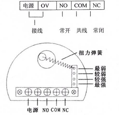 2.具體方法:打開接線盒,將扭力彈簧靠近多孔一端拿出,根據需要插入對應的孔中(靠近端子台的孔扭力最弱)。