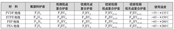注:表中代號PVDF-聚偏二氟乙烯,ETFE-乙烯四氟乙烯共聚物,FEP-聚全氟乙丙烯