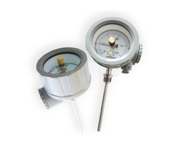 防爆電接點雙金屬溫度計帶有電接觸裝置―jijixiedianjiedian。dangbeicejiezhiwendubianhuashi,ziyouduanshangdexizhoujizhuanxiangchuandongjigoudaidongzhizhenjidongchudianzhuandong,zaibiaodupanshangzhishichuwendudebianhuazhi,dangqiyudingchudian(上、下限定觸點)接觸或斷開的瞬時,使電路係統中的繼電器及接觸器動作,以達到自動控製和報警的目的。
