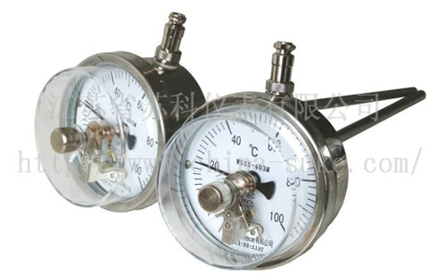 不鏽鋼電接點雙金屬溫度計是利用溫度變化時帶動觸點變化,當其與上下限觸點或斷開的同時,使電