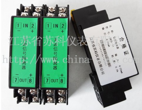 SKGL係列無源信號隔離器是一種能將輸入量的直流信號經隔離成一組輸出量的安全直流信號,從而實現對被測信號正確測量的儀器。該隔離器輸入、輸出全隔離,抗幹擾,且輸入、輸出選擇範圍寬,精確度佳,無需供電電源,導軌安裝便於檢測與維護。無源信號隔離器廣泛應用於地線幹擾抑止、信號長線傳輸、儀器儀表信號收發、隔離安全柵、數據采集、信號傳輸轉換和DCS集散控製係統。