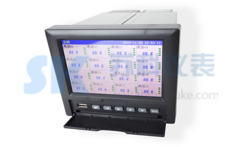 SK-130RC增強型單色無紙記錄儀是以32位嵌入式CPU為核心,並輔以大規模集成電路、大容量FLASH存儲、信號智能調理、SmartBus總線以及高分辨率圖形液晶顯示器的新型智能化無紙記錄儀表。采用320×240藍底單色液晶顯示屏;支持16通道模擬量通用輸入或8通道模擬輸出與12通道報警輸出,設定數據與記錄數據具掉電保護功能;采用USB Host技術,提供USB總線接口,實現FAT16文件係統,支持USB 移動存儲器的數據讀寫;具有體積小、通道數多、功耗低、精度佳、通用性強、運行穩定、可靠性好等特點。