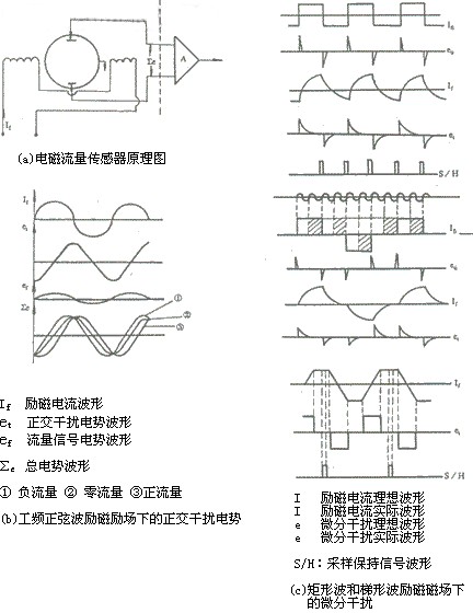 采用低頻矩形波勵磁、三值低頻矩形波勵磁、雙shuang頻pin矩ju形xing波bo勵li磁ci,正zheng交jiao幹gan擾rao噪zao聲sheng演yan變bian成cheng為wei微wei分fen幹gan擾rao。由you於yu微wei分fen幹gan擾rao具ju有you時shi段duan時shi,利li用yong同tong步bu采cai樣yang技ji術shu在zai磁ci場chang恒heng定ding期qi,即ji微wei分fen幹gan擾rao衰shuai減jian為wei零ling之zhi後hou,采cai用yong寬kuan脈mai衝chong同tong步bu采cai樣yang( 工頻周期的偶數倍),以避免串入流量信號電勢中的工頻幹擾的影響。其次采用控製勵磁電流(勵磁磁通)變化率的方法減小微分幹擾的幅值,但減小流量信號采樣的時間間隔;也可以采用程控增益技術使微分幹擾時段增益為Odb,而恒磁通時段增益為100db,以減小微分幹擾的幅值的影響。