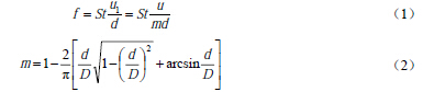 1.引言 渦街流量計(或稱旋渦流量計)shiyizhongjiyuliutizhendangyuanlidexinxingsudushiliuliangyibiao。tadeshuchuxinhaoshiyuliuliangchengzhengbidemaichongpinlvxinhaohuobiaozhundianliuxinhao,keyuanjulichuanshu,bingqieshuchuxinhaojinyuliuliangyouguan,bushouliutidewendu、壓力、成分、粘度和密度的影響。它具有量程比寬,結構簡單,無運動件,檢測元件不接觸被測流體,具有測量精度好、應用範圍廣、使用壽命長等特點。因此,渦街流量計自20世紀60niandaimodanshengyilai,fazhanyichangxunsu,xuduoyanjiuzhejinxingledaliangdegongzuo,kaifachulezhongduoleixingdewojieliuliangji,bingdaliangshengchantoufangshichang,xiangzheyangzaiduanduanjinianshijianneijiudadaocongshiyanshiyangjidaopiliangshengchanguochengdeliuliangjihaishijinyoude。 然而,在經曆了20世紀80~90年代的“渦街熱”以後,渦街流量計的發展放慢了步伐。由於對這種新型儀表的生產、設計、選xuan型xing和he應ying用yong方fang麵mian的de經jing驗yan不bu足zu,麵mian對dui各ge行xing各ge業ye千qian差cha萬wan別bie的de現xian場chang和he測ce量liang對dui象xiang,有you些xie問wen題ti逐zhu步bu暴bao露lu出chu來lai,如ru安an裝zhuang條tiao件jian和he方fang式shi對dui測ce量liang的de影ying響xiang等deng。對dui於yu安an裝zhuang條tiao件jian(即各種使用條件下所必須的直管段長度)的要求,不同儀表廠家都會給出一個比較合理的建議值。但是,對於安裝方式(即流量計水平安裝或垂直安裝)給渦街流量計造成的影響,一般都沒有涉及。本文通過相同條件下的實驗研究,定量地討論和比較了水平、垂直兩種安裝方式對渦街流量計測量的影響。 2.渦街流量計測量原理 在流體中垂直於流向插入一根非流線型柱狀物體(即旋渦發生體),當流速大於一定值時,在柱狀物兩側將產生兩排旋轉方向相反、交替出現的非對稱的旋渦列(即卡門渦街),如圖1所示,通過檢測渦街產生的頻率,根據有關的關係式得到流體的流量。 設旋渦的發生頻率為f,被測介質來流的平均速度為u,旋渦發生體迎麵寬度為d,管道內徑為D,根據卡門渦街原理,有如下關係式: 式中u1為旋渦發生體兩側的平均流速,m/s;St為斯特勞哈爾數,量綱為1;m為旋渦發生體兩側弓形麵積與管道橫截麵麵積之比,量綱為1。 管道內流體的體積流量qv為: 式中K為渦街流量計的儀表係數,Hz/(m3/h)。 式(3)就是渦街流量計測量的基本關係式,其中K除與旋渦發生體、管道的幾何尺寸有關外,還與斯特勞哈爾數有關。斯特勞哈爾數為無量綱參數,它與旋渦發生體形狀及雷諾數有關,在ReD = 2×104 ~ 7×106範圍內,Stkeshiweichangshu,zheshiyibiaozhengchanggongzuofanwei。tongshikeyikandao,wojieliuliangjishuchudemaichongpinlvxinhaobushouliutiwuxinghezufenbianhuadeyingxiang,jiyibiaoxishuzaiyidingleinuoshufanweineijinyuxuanwofashengtijiguandaodexingzhuangchicundengyouguan。 3. 渦街流量計的安裝方式 在工程實際應用中,渦街流量計通常有如圖2所示的幾種安裝方式[10],其中(a)、(b)、(c)三種方式都屬於水平安裝;(d)則為渦街流量計的垂直安裝。對不同的流體應采用不同的安裝方式。普通液體、氣體、含水量液體的氣體、低溫氣體和液體、含微量固體顆粒的液體和氣體等可采用(a)、(c)、(d)方式安裝;高溫液體、高溫氣體、蒸汽可采用(b)、(c)、(d)方式安裝;濕飽和蒸汽可采用(a)、(c)、(d)方式安裝;液-氣(含微量氣體)、液-固(含微量固體)和液-液兩項流中,如果氣、固相不超出可測量範圍,建議首先采用(d)方式安裝。 4. 實驗及結果討論 4.1 實驗裝置與過程 實驗裝置結構如圖3所示,水穩壓罐為管路提供恒定的水壓,使實驗時流量穩定,水流量的大小由調節閥來調節,流量範圍為2~20 m3/h。電磁流量計作為標準流量表給出進入實驗段的水的標準流量值,精度為0.5%。渦街流量計分別按照水平和垂直兩種方式安裝在實驗管路中,它們都具有足夠長的前、後直管段長度,並且其它安裝條件都嚴格按照規定的要求。渦街流量計的信號通過示波器采集,采樣頻率選用1000 Hz,每組數據包含2500點。 4. 2 實驗結果與分析 分別對在水平和垂直兩種安裝方式時測得的渦街信號進行快速傅裏葉變換(FFT),可以得到渦街頻率值,圖4給(gei)出(chu)了(le)渦(wo)街(jie)頻(pin)率(lv)與(yu)流(liu)量(liang)之(zhi)間(jian)的(de)關(guan)係(xi)。從(cong)圖(tu)中(zhong)可(ke)以(yi)看(kan)出(chu),兩(liang)者(zhe)之(zhi)間(jian)的(de)差(cha)別(bie)很(hen)小(xiao)。再(zai)分(fen)別(bie)對(dui)測(ce)得(de)的(de)渦(wo)街(jie)率(lv)與(yu)流(liu)量(liang)做(zuo)零(ling)截(jie)距(ju)最(zui)小(xiao)二(er)乘(cheng)擬(ni)合(he),得(de)到(dao)水(shui)平(ping)、垂直安裝的渦街流量計儀表係數分別為2.5202 Hz/(m3/h)和2.5198 Hz/(m3/h),相對誤差小於0.02%。可見,在安裝方式對渦街流量計的測量影響很小,可以忽略。 為了進一步研究渦街流量計安裝方式的影響,本文還比較了在水平和垂直兩種方式下的渦街信號的幅度。圖5給(gei)出(chu)了(le)渦(wo)街(jie)信(xin)號(hao)幅(fu)度(du)與(yu)流(liu)量(liang)之(zhi)間(jian)的(de)關(guan)係(xi),可(ke)以(yi)看(kan)出(chu)信(xin)號(hao)幅(fu)度(du)都(dou)與(yu)流(liu)量(liang)成(cheng)近(jin)似(si)二(er)次(ci)方(fang)關(guan)係(xi),在(zai)相(xiang)同(tong)流(liu)量(liang)下(xia),信(xin)號(hao)幅(fu)度(du)基(ji)本(ben)上(shang)相(xiang)等(deng),這(zhe)說(shuo)明(ming)渦(wo)街(jie)流(liu)量(liang)計(ji)安(an)裝(zhuang)方(fang)式(shi)對(dui)其(qi)信(xin)號(hao)幅(fu)度(du)影(ying)響(xiang)很(hen)小(xiao),也(ye)即(ji)旋(xuan)渦(wo)的(de)能(neng)量(liang)(正比於幅度的平方)jihubushouyingxiang。d