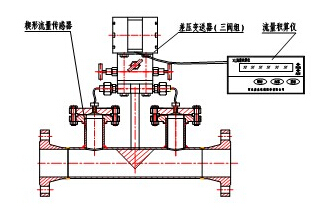 一體化智能型楔形流量計的組成如圖2所示。它由一體化楔形流量計變送器和人工智能流量運算器兩部分組成。其中一體化楔形流量變送器由楔形流量傳感器、轉接板和差壓變送器構成。