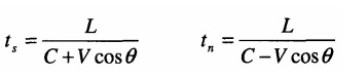 在管道中斜裝一對超聲波傳感器兩個傳感器之間的距離L為超聲波傳播聲程。那麼,超標在兩各傳感器之間的順流和逆流傳播時間分別為: