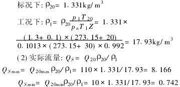 式中:ZS(ZSN)為被測氣體在標準狀態(工作狀態)下壓縮係數(一般情況ZSUZSN);QS為工況下氧氣的實際流量;QN為標況下空氣的實際流量;QN為標況下空氣的密度(11293kg/m3);pN為標準大氣壓;TN為標準溫度293115K;QSN為標況下氧氣的密度(即Q20);pS為氧氣實際工作壓力(即p1);TS為氧氣實際工作溫度(即T1)。