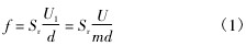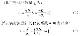 式中: f 為旋渦頻率; Sr為斯特勞哈爾數; m 為旋渦發生體兩側弓形麵積與管道橫截麵麵積之比,不可壓縮流體中,由於流體密度 ρ 不變,由連續性方程可得到 m = U/U1。