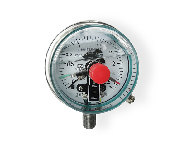 在電接點壓力表裝(zhuang)置(zhi)的(de)電(dian)接(jie)觸(chu)信(xin)號(hao)針(zhen)上(shang),裝(zhuang)有(you)可(ke)調(tiao)節(jie)的(de)永(yong)久(jiu)磁(ci)鋼(gang),可(ke)以(yi)增(zeng)加(jia)接(jie)點(dian)吸(xi)力(li),加(jia)快(kuai)接(jie)觸(chu)動(dong)作(zuo),從(cong)而(er)使(shi)觸(chu)點(dian)接(jie)觸(chu)可(ke)靠(kao),消(xiao)除(chu)電(dian)弧(hu),能(neng)有(you)效(xiao)的(de)避(bi)免(mian)儀(yi)表(biao)由(you)於(yu)工(gong)作(zuo)環(huan)境(jing)振(zhen)動(dong)或(huo)介(jie)質(zhi)壓(ya)力(li)脈(mai)動(dong)造(zao)成(cheng)觸(chu)點(dian)的(de)頻(pin)繁(fan)關(guan)斷(duan)。所(suo)以(yi)電(dian)接(jie)點(dian)壓(ya)力(li)表(biao)具(ju)有(you)動(dong)作(zuo)可(ke)靠(kao)、使用壽命長、觸點開關功率較大等優點。